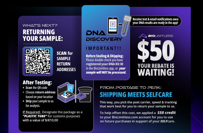 BioLimitless DNA Discovery Kit sample return addresses & shipping reminders