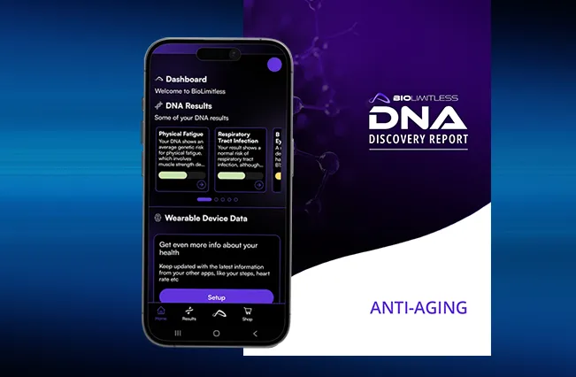 Your genetic data never changes, so as science advances, new information unlocks automatically in your BioLimitless app.*